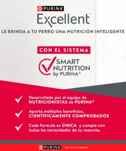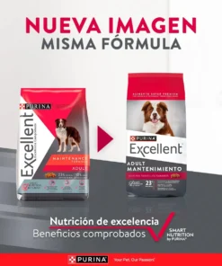 Los perros adultos tienen diferentes necesidades nutricionales que los cachorros o los perros maduros. PURINA® Excellent® FORMULA MAINTENANCE ADULT ofrece una fórmula completa que incluye tocoferoles mezclados fuente de vitamina E, y sin colorantes ni saborizantes artificiales aportando un óptimo balance nutricional y un sabor irresistible.